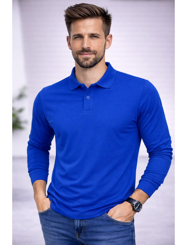 POLO YAKA UZUNKOL-PAMUK PENYE 1.KALİTE - RENK SAX MAVİ