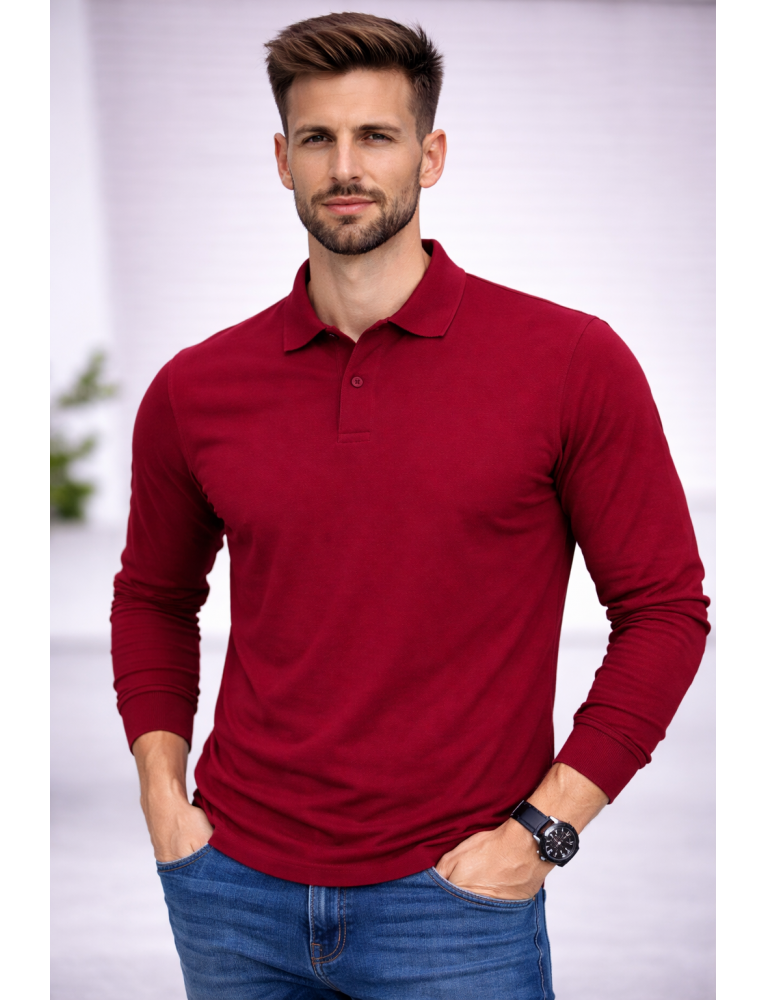 POLO YAKA UZUNKOL-PAMUK PENYE 1.KALİTE - RENK BORDO