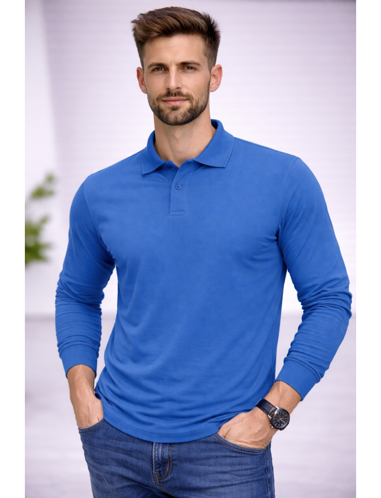 POLO YAKA UZUNKOL-PAMUK PENYE 1.KALİTE - RENK MAVİ