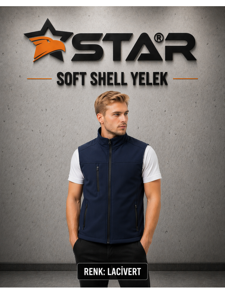 STAR SOFT SHELL YELEK - ÖNDE 3 CEP FERMUARLI - LACİVERT